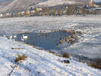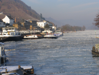 Die Mosel - fast komplett zugefroren im Januar 2009: |