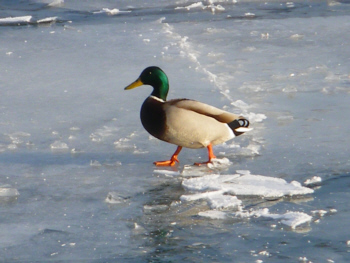 Eine Ente auf dem Eis - ob die wohl kalte Füße hat ?? |